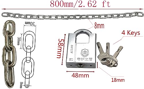 Le maglie della catena saldate spesse 8 mm con una lunghezza di 800 mm forniscono protezione di sicurezza per biciclette, mobili da esterno, motocicli, scale, utensili elettrici e altri oggetti difficili da bloccare.