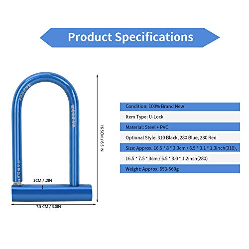 Lucchetto a U per bici con chiavi, Lucchetto a U per bici Bicicletta in acciaio ad alta resistenza Antifurto U-Lock resistente Anti-polvere Nucleo in rame puro Serrature a U per porte(Blu)