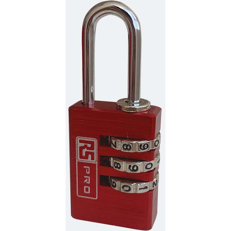 Tipo di bloccaggio = Lucchetto a combinazione Diametro grillo = 3mm Lunghezza grillo = 21mm Passepartout = No Resistente alle intemperie = No Materiale = Alluminio Larghezza corpo = 23mm Il lucchetto di sicurezza a combinazione RS Pro è dotato di un solido corpo in alluminio con rivestimento anodizzato che ha anche un codice resettabile. Il colore è rosso e lacciaio utilizzato è in alluminio.Adatto per applicazioni di blocco di sicurezza
