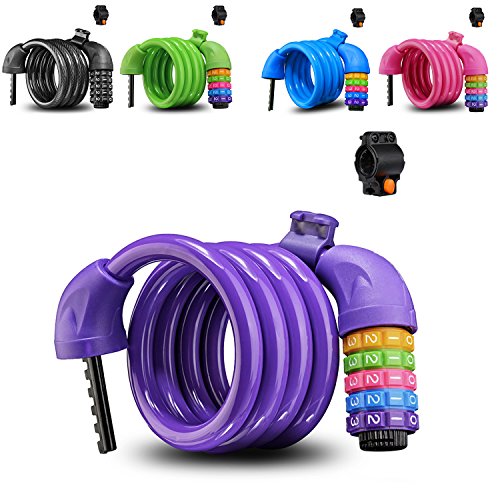 Migliori Lucchetto Combinazione Bicicletta: questa serratura per bici antifurto misura 110 centimetri di lunghezza per assicurare che tutte le parti in movimento della bici-ruote, sella, casco-in caso di arresto. Questo accessorio per la sicurezza della bicicletta è dotato di un supporto clip che può essere collegato al telaio della bicicletta e permette un facile trasporto quando non è in uso.
