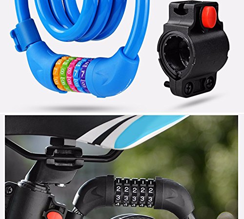 Codice combinato anti-furto: la serratura lucchetto bicicletta spirale con un lucchetto combinato a 5 cifre. Questa combinazione è intercambiabile e composta. Il cavaliere non deve preoccuparsi delle chiavi e può memorizzare facilmente il codice.