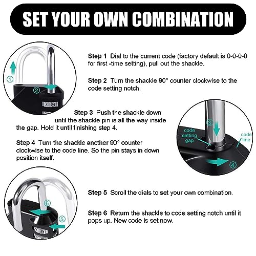 【Materiale di alta qualità】 Il lucchetto a combinazione di colori è realizzato in lega di alluminio di alta qualità, non facile da ossidare e arrugginire, resistente e non facile da arrugginire.