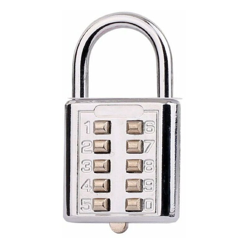 Lucchetto in acciaio argento con combinazione a 10 cifre 38 mm Questo lucchetto antifurto è perfetto per l'uso all'aperto per bloccare i tuoi effetti personali come biciclette, porte di capannoni, cancelli del giardino o bagagli mentre sei in viaggio È fatto di materiale resistente, acciaio resistente e impermeabile, quindi puoi usarlo indipendentemente dalle condizioni atmosferiche in cui lo stai utilizzando. Non preoccuparti di perdere le chiavi, questo lucchetto ha un codice digitale, quindi non è necessario rintracciare le chiavi per sbloccarlo Questo lucchetto è dotato anche di un grillo in acciaio e di un cilindro in lega di zinco per evitare che i ladri rompano il lucchetto o lo blocchino per usura 70 mm di lunghezza, 38 mm di larghezza < p>Grillo orizzontale x verticale Distanza: 24 x 27 mm Diametro del grillo: 5 mm caratteristica Tieni al sicuro i tuoi oggetti di valore, lucchetto a combinazione a 10 cifre per una maggiore sicurezza Acciaio robusto, realizzato in acciaio