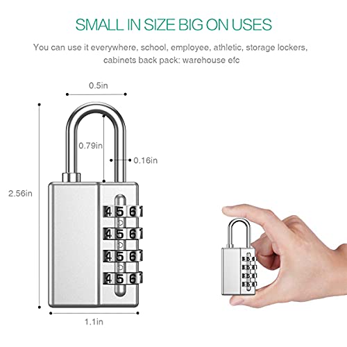 ORIA Lucchetto a Combinazione, 4 Cifre Serratura a Combinazione, Lucchetto Armadietto con Design a Doppia- Apertura, Materiale in Lega di Zinco, 10000 Combinazioni per Palestra, Valigia, ecc-Argento