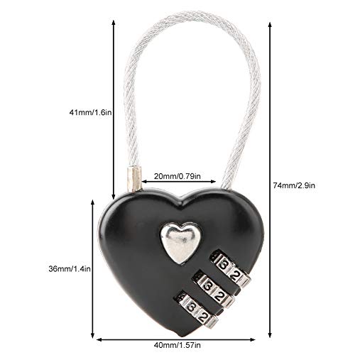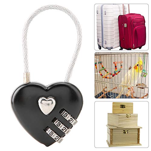 Lucchetto a coppia, a forma di cuore a 3 cifre Codice Combinazione Bagaglio Blocco Password Sicurezza Lucchetto a coppia per bagagli, zaino, portagioie, armadietto per hall(Nero)