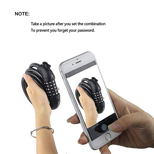 Lucchetto Emiup per bicicletta, lucchetto di sicurezza con combinazione a 5 cifre, con cavo e staffa di montaggio, per bicicletta, attrezzatura sportiva, griglie e altri oggetti