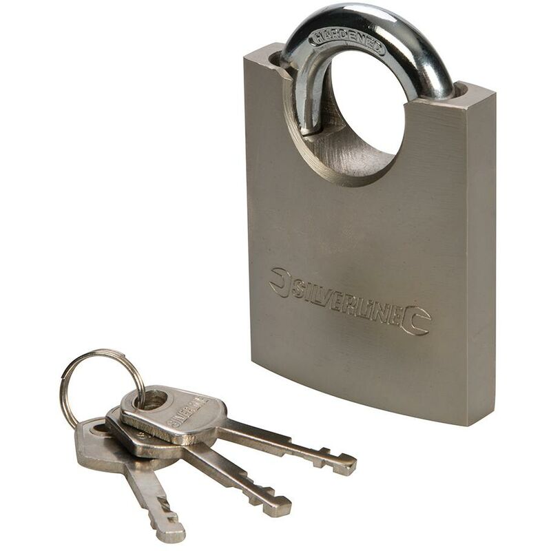 Corpo in solido acciaio con cilindro di serraggio in ottone. Anello protettivo in ottone cromato alla base e gambo incassato indurito e cromato a doppia chiusura. Include 3 chiavi. Giogo gambo orizzontale x verticale: 298532: 23 x 27 mm, ø gambo 9,5 mm;