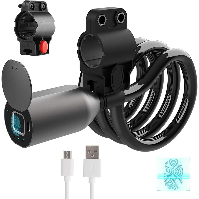 Sblocco impronte digitali - Il tuo dito è la chiave. Non preoccuparti di perdere la chiave. Antifurto, le chiavi non possono essere copiate. Supporto per impronte digitali 2 amministratori e 18 utenti normali, sblocco rapido in 0,5 secondi. 【Struttura solida e prestazioni impermeabili】 Cavo in acciaio con rivestimento in gomma PVC e custodia in lega di alluminio così resistente da non rompersi o tagliare. La serratura elettronica IP65 è impermeabile e antipolvere. Adatto per uso interno ed esterno come porte di casa, palestre, cancelli, magazzini, valigie, biciclette, garage, uffici, ecc. 【Durata della batteria estrema】 Il lucchetto per bici intelligente ha un basso consumo energetico e una lunga attesa tempo. La batteria al litio ricaricabile da 110 mAh supporta 6 mesi in standby e può essere sbloccata oltre 2000 volte 【Funzione di ricarica USB】 Quando la batteria è scarica, Smart Lock rimarrà bloccato. Basta collegare il lucchetto alla presa di corrente o caricarlo con un power bank