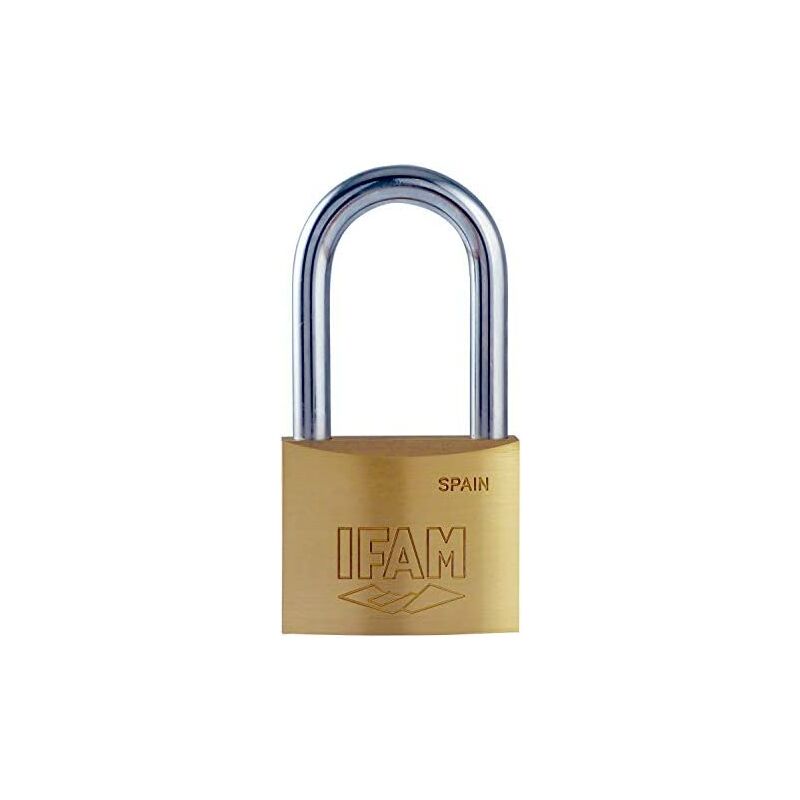Lucchetto k50al. ottone. 50 mm. con 2 chiavi. arco lungo. serie k. fornisce un'eccellente e versatile soluzione di sicurezza, in questo caso grazie al suo arco normale. è caratterizzato dal corpo in ottone e dall'arco in acciaio carbonitrurato e cromato. il suo sistema di apertura/chiusura è automatico a doppia chiusura e con cilindro di sicurezza antipizzicamento. ifam