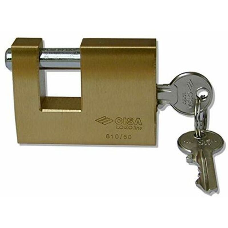 LUCCHETTO CISA LOCKINGLINE A.21610 50MM LUCCHETTO CISA LOCKINGLINE A.21610 50MM Corpo monoblocco in ottone smerigliato, arco in acciaio cementato nichelato con testa antistrappo In dotazione 2 chiavi