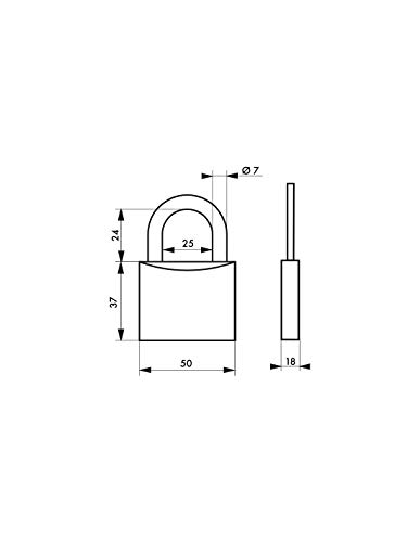 Corpo in alluminio. Ansa in acciaio cementato nichelato. Meccanismo a pin. Doppio ancoraggio. 2 chiavi in ottone nichelato. Guscio in pvc colorato