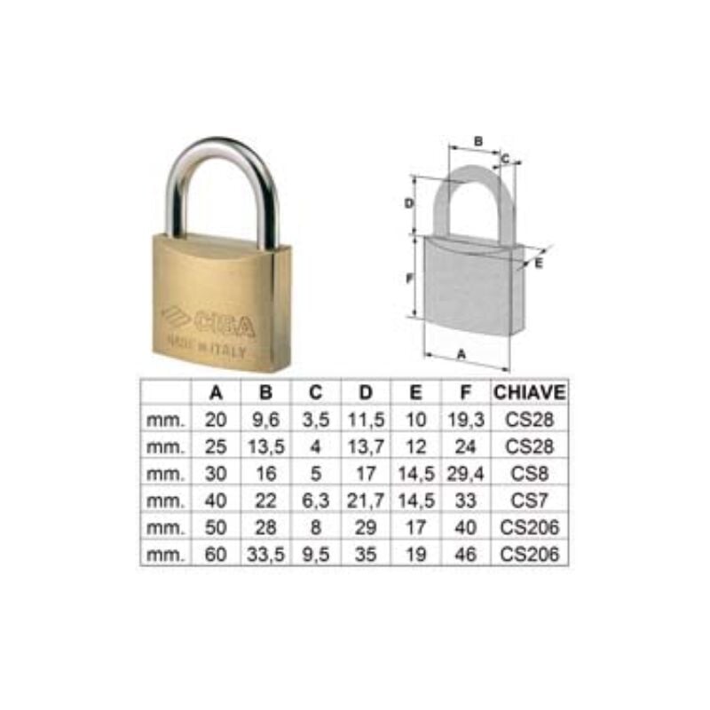 Mm.25 (art.22010250) corpo monoblocco in ottone smerigliato, arco in acciaio carbonitrurato nichelato, dotazione 2 chiavi Categoria merceologica: Lucchetti e accessori - Sicurezza - Lucchetti ad arco