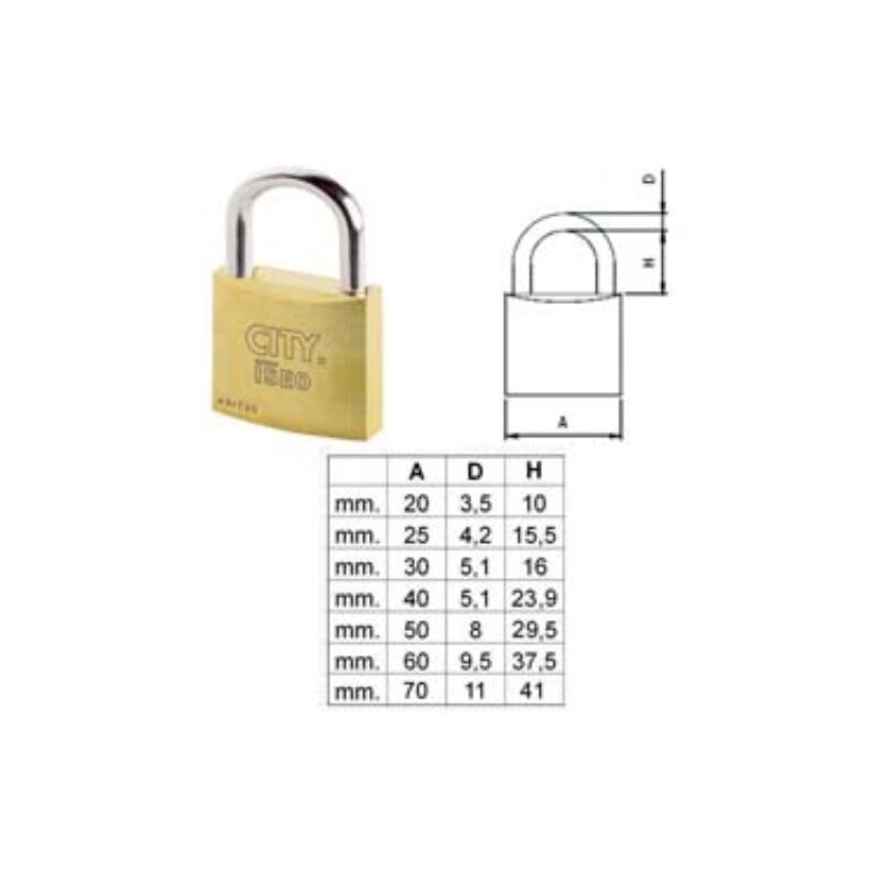 Mm.60 (p70060377) corpo monoblocco in ottone satinato e verniciato, arco in acciaio temperato e cromato, dotazione 2 chiavi Categoria merceologica: Lucchetti e accessori - Sicurezza - Lucchetti ad arco