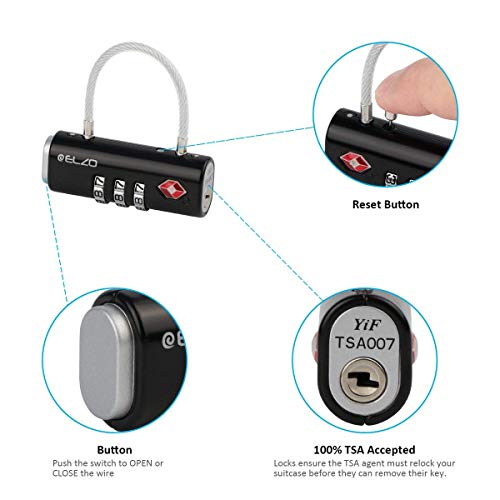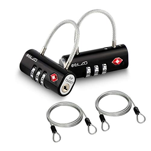 ELZO Lucchetto TSA, 2 pezzi Lucchetto per Valigia TSA, 3 Cifre Combinazione per Valigia tsa, Lucchetti da Viaggio, Lucchetti con Cavo in Acciaio 3.3ft per i Bagagli, Palestra, Lucchetti Valigie