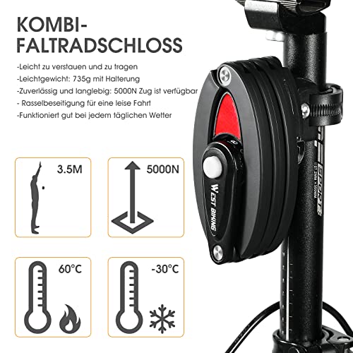 【Compatto, robusto e robusto】: lucchetto bici sono 4,72 x 2,36 x 1,77 pollici, una dimensione molto piccola, ma il peso con supporto è di 735 g. Plastica PA6 + corpo del lucchetto in lega di acciaio ad alta resistenza (0,39 x 0,59 pollici) e lega di zinco + cilindro di chiusura in lega di rame con copertura in ABS rendono la bicicletta Taglio e sega. e infrangibile. Ha superato il test di caduta da 3,5 m e il test di trazione 5000 N. Lucchetto pieghevole per rendere la tua bicicletta più sicura
