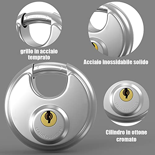 Lucchetto Resistente, [Forte Sicurezza] Diyife Serrature Di Sicurezza Disco Lucchetto, Antitaglio Lucchetto Antiscasso 70 mm, con 2 chiavi, Lucchetto Per Armadio con Chiave per Interno, Esterno