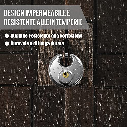 【Ampiamente Usato】 Adatto per uso esterno e interno. Questo lucchetto rotondo funziona bene per armadi, magazzino, magazzino, recinzione, garage, capannone, cancello, ecc.