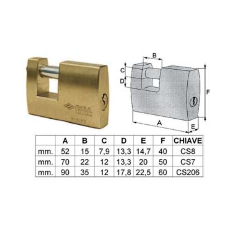 Mm.70 (art.21610700) corpo monoblocco in ottone smerigliato, barra in acciaio cementato nichelato antistrappo, dotazione 2 chiavi Categoria merceologica: Lucchetti e accessori - Sicurezza - Lucchetti rettangolari