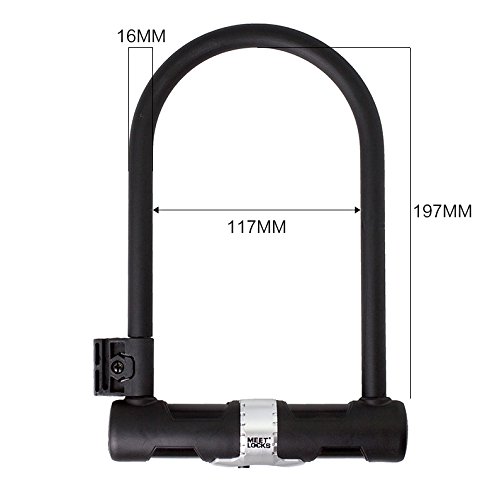 Lucchetto per bici da 12 mm, con robusta staffa di montaggio, cavo flessibile, 1,5 m x 1,3 cm, U LOCK