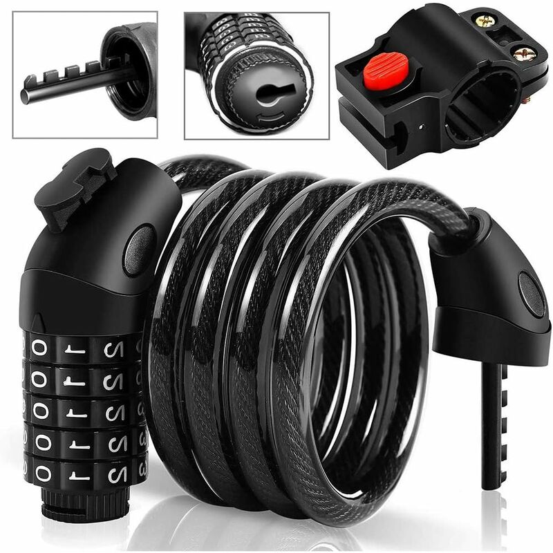 reset facile della combinazione personale desiderata. Materiali tecnici ABS di alta qualità: adotta un materiale più leggero di alta qualità, il lucchetto per bici ha un pannello di blocco ad alta resistenza, durevole ma leggero che può resistere a forti pressioni senza distorsioni. Eccellenti prestazioni del lucchetto per bicicletta: con la pregevole fattura del buco della serratura, il rivestimento in PVC e il robusto nucleo interno, il lucchetto per bicicletta può fornirti una protezione più sicura e un migliore effetto antifurto. Lucchetto universale per bici: il lucchetto per bici fornisce una staffa che può facilmente installare il lucchetto nella tua bici, un lucchetto a cavo ti dà più praticità, ideale per tutte le bici, cancelli, recinzioni, tosaerba, tosaerba, attrezzature