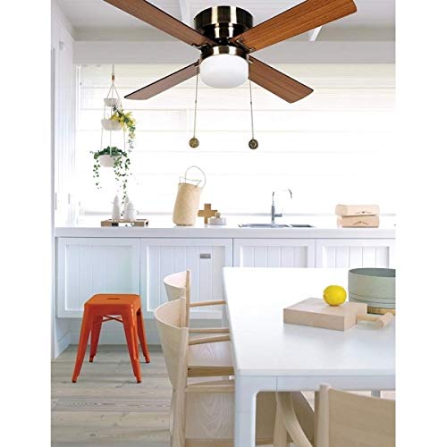 LUCCI AIR, Ventilatore da soffitto/lampadario in ottone antico con interruttore a tirante