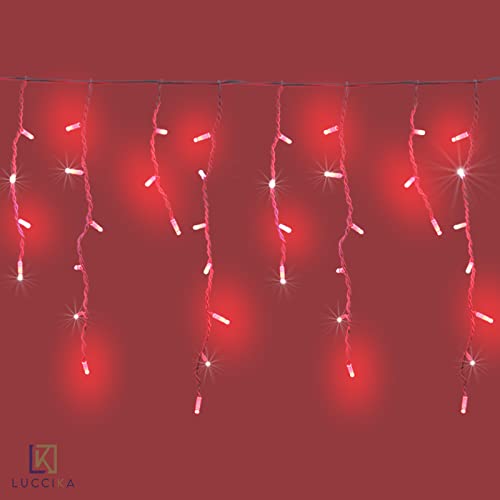 Luccika Cascata di luci a Ghiacciolo Professionale 4x0.70 metri Prolungabile con 200 MaxiLed e flash per uso Esterno (Rosso con Flash Ghiaccio)