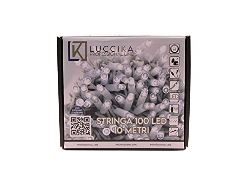 Luccika stringa catena di luci di Natale a led professionale con MaxiLed per ristoranti hotel strade e viali per uso esterno ed interno (Bianco Caldo con Flash Bianco Ghiaccio, 10 Metri - 100 LED)
