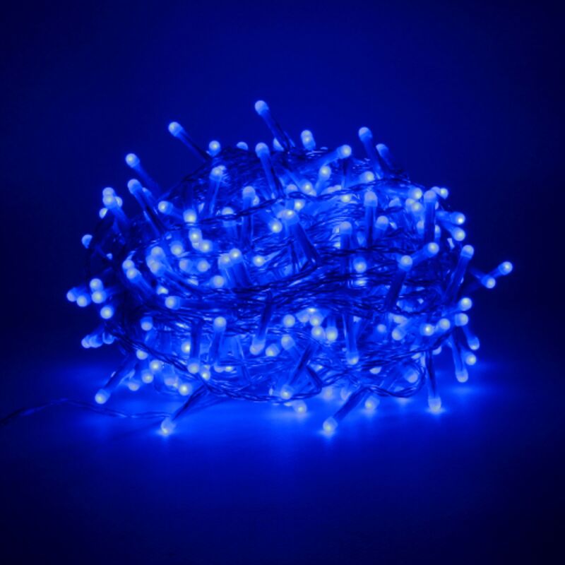 Luccika Home. Catena luminosa a led Blu con cavo trasparente applicabile all'interno e all'esterno ideale per decorazioni natalizie. CARATTERISTICHE: - Colore luce: Blu. - Angolo di illuminazione: 360o. - Distanza fra luci: 5 cm. - Colore cavo: Trasparente. - Lunghezza totale: 28 mt. - Lunghezza cavo alimentazione: 3 mt. - Numero di Led: 500 Led. - Giochi di luce: 8 giochi di luce con controller. - Grado di protezione: IP44. - Installazione: Interno ed Esterno. - Consumo 6W. - Voltaggio nominale: 31V. - Frequenza nominale: 50 Hz. - Non e' possibile collegare piu' catene.
