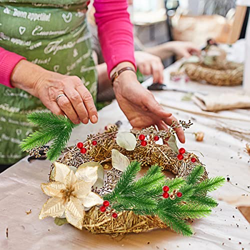 Luccyle Filiali Artificiale di Pino, 36 Pezzi Rami di Pino di Plastica di Natale + 6 Fiori di Natale + 20 Bacche di Agrifoglio, per Decorare Tavoli da Pranzo, Ghirlande Natalizie