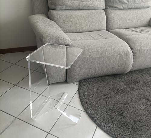 LuceSolida - 'Flow' Tavolino in Plexiglass Lato Divano con Portariviste Trasparente da Salotto o Camera (L30xP30xH56)