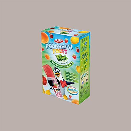Ghiaccioli POLARETTI pronti da gelare DOLFIN gusti assortiti (Arancia, Amarena, Limone,Fragola) con succo di frutta da agricoltura biologica.Con POLAR sorpresa.