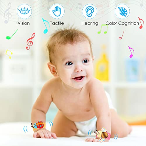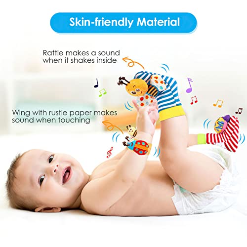 Luchild Neonato Sonagli Calzini da Polso, 4 PCS Foot Finder Soft Neonato sonagli Calzini, Sonagli e Sonaglio per Bambini Giocattoli sensoriali per Bambini da 0 a 12 Mesi