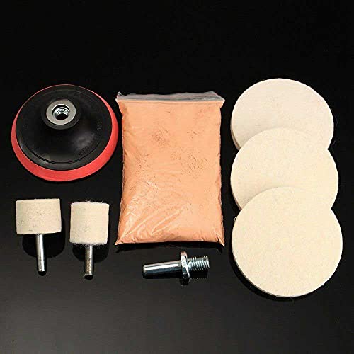 Kit di lucidatura per vetri auto, kit di rimozione graffi, kit di lucidatura in ossido di cerio, kit di rimozione graffi e feltro + cuscinetto da 7,6 cm