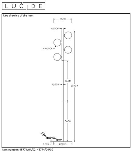 LUCIDE TYCHO - Lampada a stelo 4 x G9, oro opaco/ottone