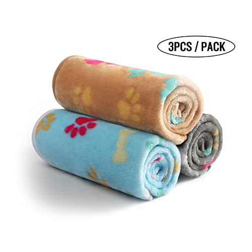 Luciphia 3 Pezzi Coperta per Cane/Gatto Lavabile Soffice Durevole, Morbida e Calda Flanella Multicolore Osso Small (60 * 40cm)