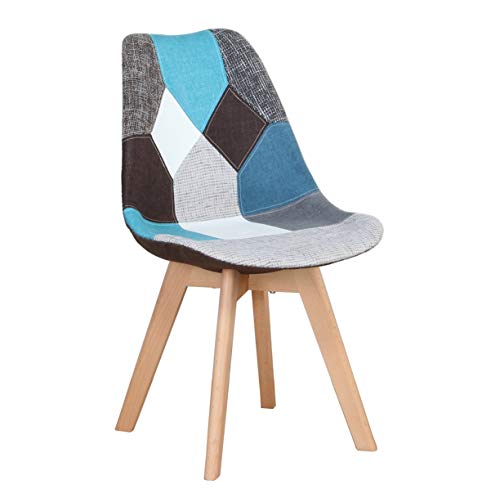 Luckeu Sedia da pranzo ergonomica semplice cotone e lino patchwork cuscino in spugna in legno massello per cucina, soggiorno, salotto, ufficio, set di 4 (blu, 4)