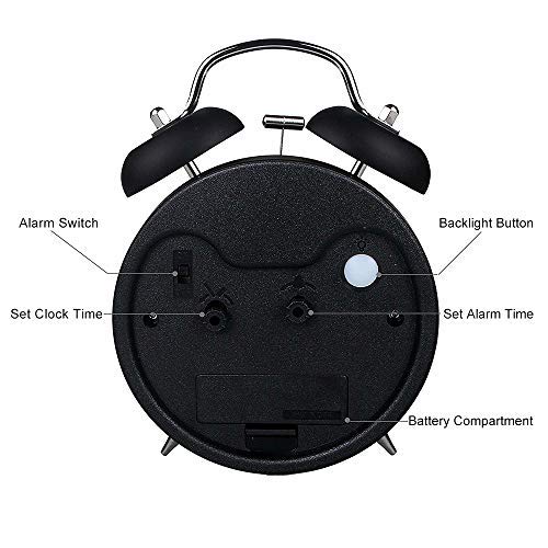 LUCKGOOD886 Sveglia a Doppia Campana Sveglia Metallo Sveglia da Comodino Retro Sveglia,Sveglia da Viaggio Piccola e Leggera al Quarzo,Sveglia Analogica Silenziosa e Antistress con la Luce Notturna