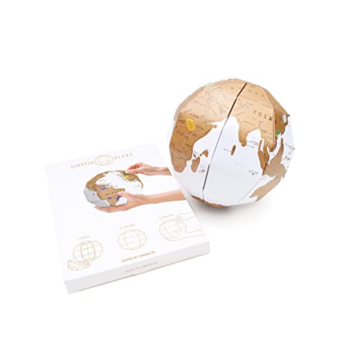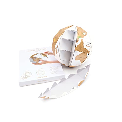 Luckies of London Scratch Globe - Mappamondo da grattare personalizzabile - Scratch Map alternativa - Globo 3D colorato e divertente - Ottimo per studenti - Idea regalo per viaggiatori - Bianco/Oro