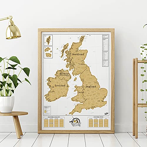 SCRATCH MAP DEL REGNO UNITO - Questa cartina da grattare misura 82,6 x 59,4 centimetri e rappresenta l'Inghilterra, la Scozia e l'Irlanda nonché le varie isole circostanti. Gratta la lamina dorata mano a mano che viaggi in un luogo nuovo ed emozionante.