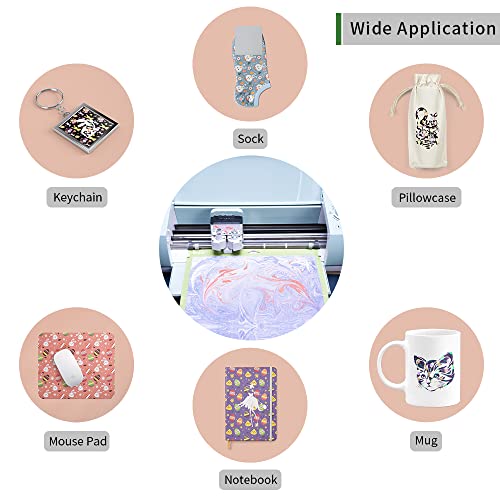 【Ampie applicazioni】 Dopo la stiratura, la carta per sublimazione può creare rapidamente immagini su squisita porcellana, metallo, seta, stoffa in fibra chimica e altri materiali, come magliette, sottobicchieri, cuscini, tazze, borse, scarpe, calzini, cappelli, grembiuli, bandiere da giardino, ecc.