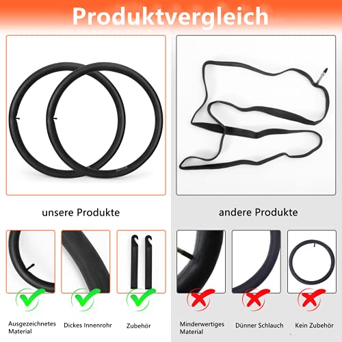 Materiale eccellente: il tubo per bicicletta è realizzato in gomma butilica, che ha una migliore tenuta d'aria ed è più forte e durevole rispetto ai normali tubi in gomma. Lo spessore del tubo è di circa 1 mm, molto adatto per mountain bike, biciclette domestiche, ecc.