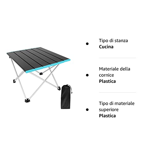 Luckits Tavolo da campeggio portatile con piano in alluminio pieghevole e borsa per il trasporto, tavolo da campeggio pieghevole per campeggio, barca, cucina, barbecue, uso domestico, tavolo di Bach