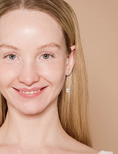 LUCKMORA Orecchini da Donna con Perle Goccia Pendenti Argento 925 Orecchini a Punta Naturale Rotonde Coltivate D'Acqua Dolce Perline (White)