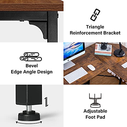 LUCKRACER Scrivania Angolare Gaming Tavolo Ufficio per PC Salvaspazio a Forma di L Scrivania Computer ad Angolo in Stile Industriale Marrone
