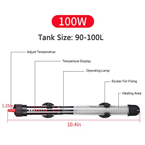 Lucky Farm Aquarium, Heater, scaldabagno automatico per acqua calda, asta di riscaldamento costante con indicatore di temperatura (100 Watt)