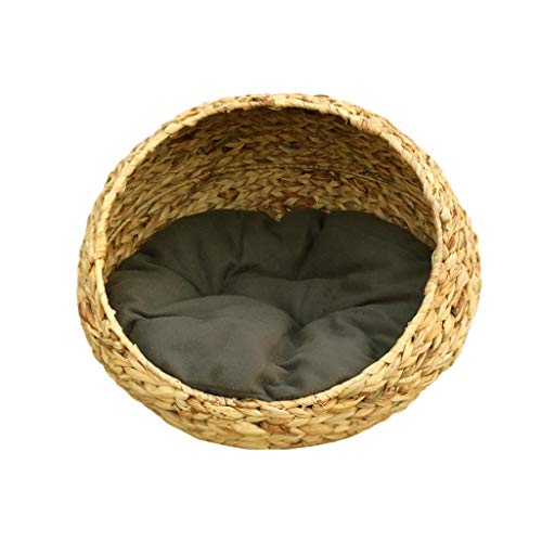 Lucky Star Cupola del Letto del Gatto di Vimini per Gatti Interni Medi, Gatto Hideaway capanna di Case in Rattan Animali Domestici nel Cestino della Cupola