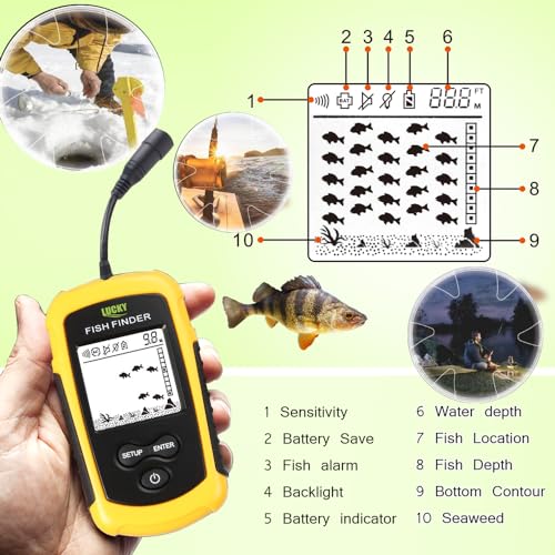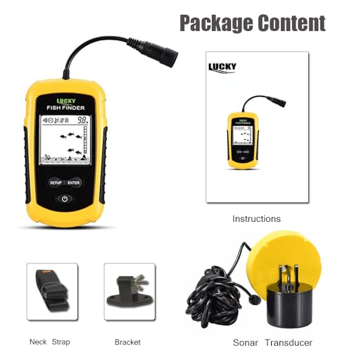 LUCKY Ecoscandaglio da Pesca Portatile Cercatore di Pesce Profondo Sonar Sounder Allarme Impermeabile Fishfinder 100 m 328 Piedi Sonar Pesce Sonar