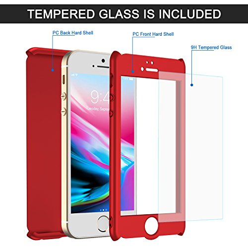 Luckydeer, custodia per iPhone SE con [1 pellicola protettiva in vetro temperato] (rosso 4,0 pollici)