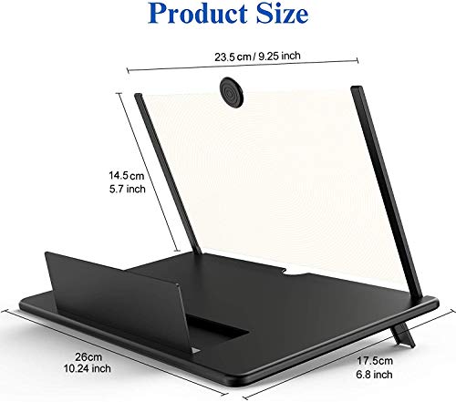 Luckynono Lente di ingrandimento dello Schermo del telefono12 '',3D Telefono Cellulare Lente d'Ingrandimento,Pieghevole HD Ingranditore Schermo Smartphone per Tutti Gli Smartphone