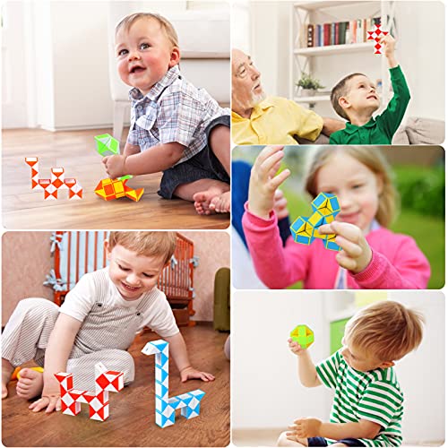 12 Pack 24 Blocks Magic Snake Cube: i giocattoli puzzle di serpenti tortuosi Luclay contengono 12 confezioni da 24 mini cubi di velocità del serpente. Questo set di cubi serpente magico è realizzato in plastica riciclabile. È resistente e colorato (colori casuali) che può aumentare l'attenzione e l'attenzione di altre persone.
